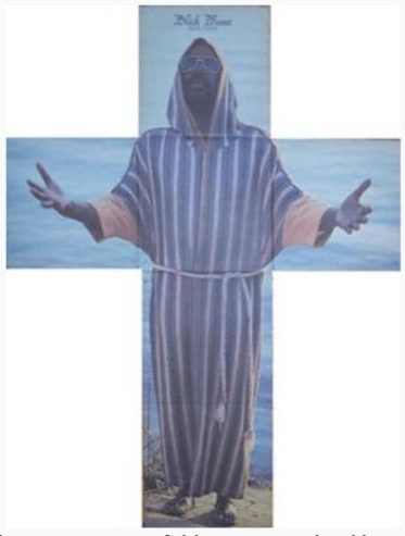 Black Moses took cover art and album design to the very extreme. On the cover, we see Hayes adorned in his Moses-like robe, his eyes shielded by Ray-Ban sunglasses, gazing up to the heavens. Those who first unwrapped the album were in for an even bigger surprise. The cover design opened into a shocking six-square inner fold which, when fully extended to four feet in length, transformed into the shape of a cross.