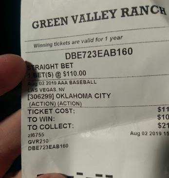 For the first time, I decided to skip the game. I’m tired. I’m ahead, by a nice score. My Minnesota Twins sports ticket won, I see. This has been a helluva’ day. Oh, and my car’s sitting in an industrial park in SW Las Vegas past midnight out of gas.