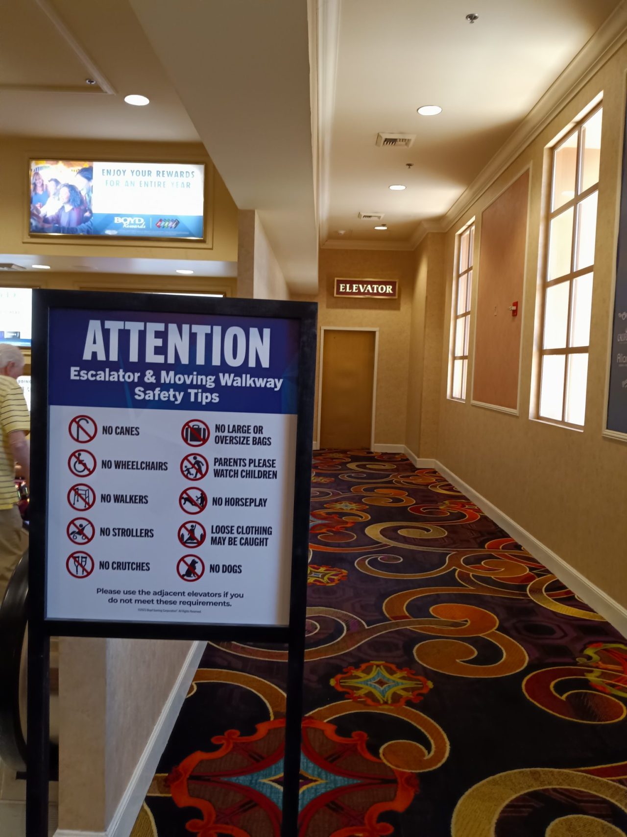The same casino company that was sued and settled now has big signs up at its escalators. “Safety tips” they call it. What next? Signs and safety tips on every staircase? At every elevator? At every doorway? Revolving doors are dangerous….will signs be necessary at revolving doors to warn idiots with walkers to proceed with caution? When does the mass madness of crazy lawsuits end and PERSONAL RESPONSIBILITY begin?