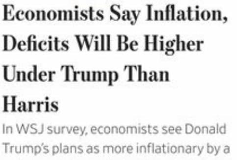 Virtually every economist agrees that Trump’s proposed tariffs on imported goods would crash the economy. And, this comes just as we’re finally crawling out of Trump’s destruction, which unfortunately was inherited by Biden and a Democratic administration. It’s really a shame that Biden and Democrats took such a long time cleaning up the mess of Trump’s drunken frat party. But cleanups, when done right, TAKE TIME. Now, look at the stock market which Trump repeatedly used as the barometer of economic success (that’s all he talked about for four years was “his” rising stock market)–it’s more than DOUBLED under a Democratic administration. Inflation today (about 3 percent) is about where it was was Trump was in office. Gas prices are about the same as four years ago.