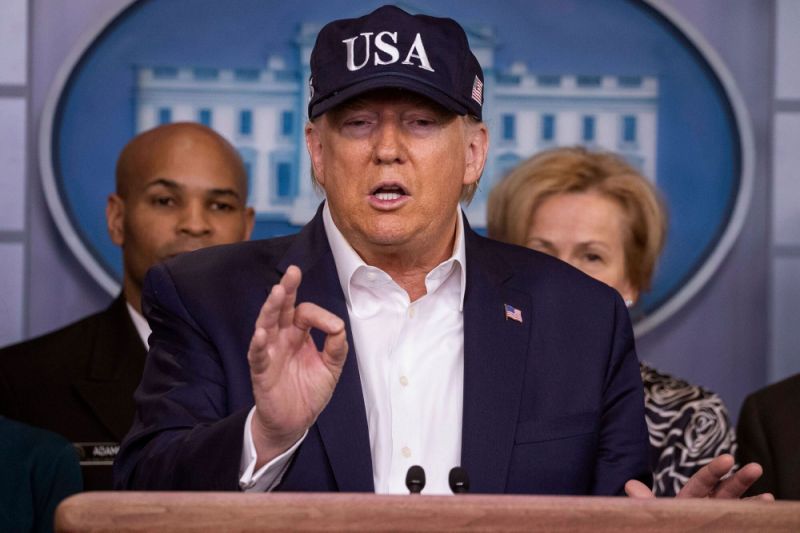 Yeah, nothing says “let’s don’t politicize this” like wearing a USA TRUMP 45 campaign hat during an official White House press conference on the coronavirus while threatening to fire the Federal Reserve chairman.