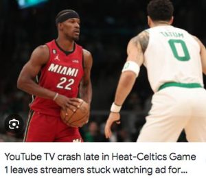 A YouTube TV crash during Wednesday night’s Heat-Celtics playoff game left NBA fans stunned and smashing their refresh buttons. It’s was almost the infamous 1968 Raiders-Jets AFL playoff “Heidi” game all over again.