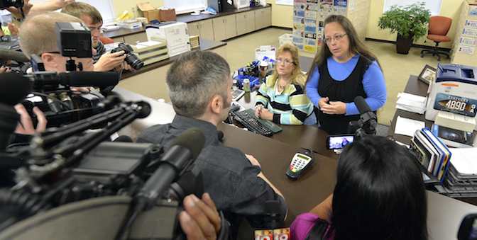 In 2015, an elected public official named Kim Davis openly defies federal law, denying equality for all.